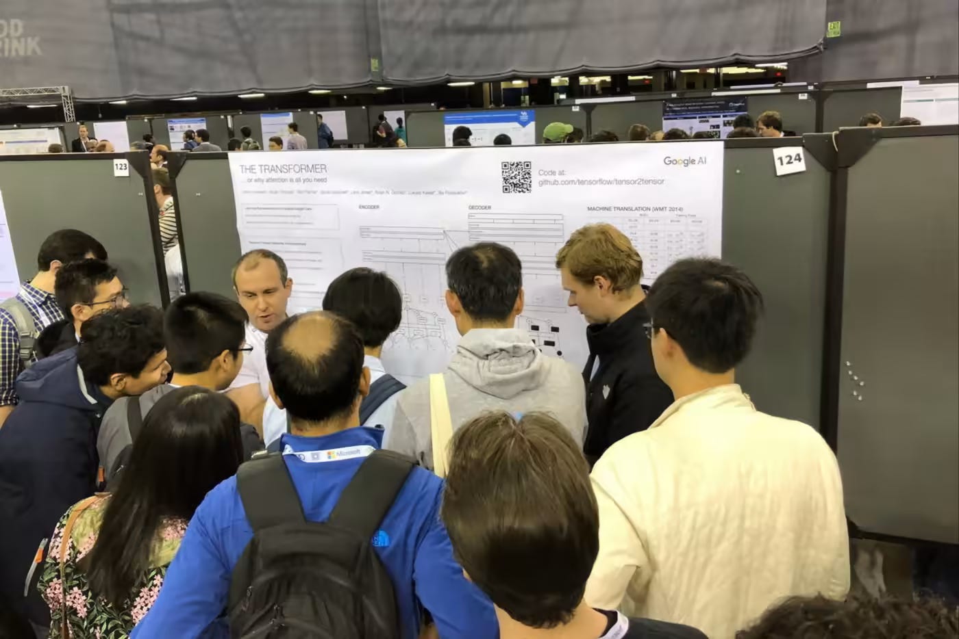 “A peer-reviewed version of the paper was published in December 2017, just in time for NeurIPS, one of the most prestigious machine learning conferences held in southern California that year. Many of the transformers authors remember being mobbed by researchers at the event when displaying a poster of their work. Soon, scientists from organisations outside Google began to use transformers in applications from translation to AI-generated answers, image labeling and recognition. At present, it has been cited more than 82,000 times in research papers.”